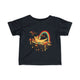 Behold, dear shopper, the "Floating in Mushrooms Cat Infant Jersey Tee" – a sartorial tribute to the feline kind's astral authority. Envelop yourself in this dark canvas, where a cat, our galaxy's casual conqueror, reclines amidst a constellation of cosmic mushrooms. Every thread whispers tales of whimsical worlds where cats reign with velvet paws over starlit kingdoms. This isn't just a t-shirt; it's a wearable manifesto, declaring that in the grand tapestry of the universe, it's the cats who spin the yarns. With its rich, earthy tones and a design that tickles the fancy of celestial dreamers and earthbound cat enthusiasts alike, this tee is a must-have. It promises to be the purrfect conversation starter, so adorn yourself in this and let the legend of feline finesse be proudly paraded under every sun and moon!